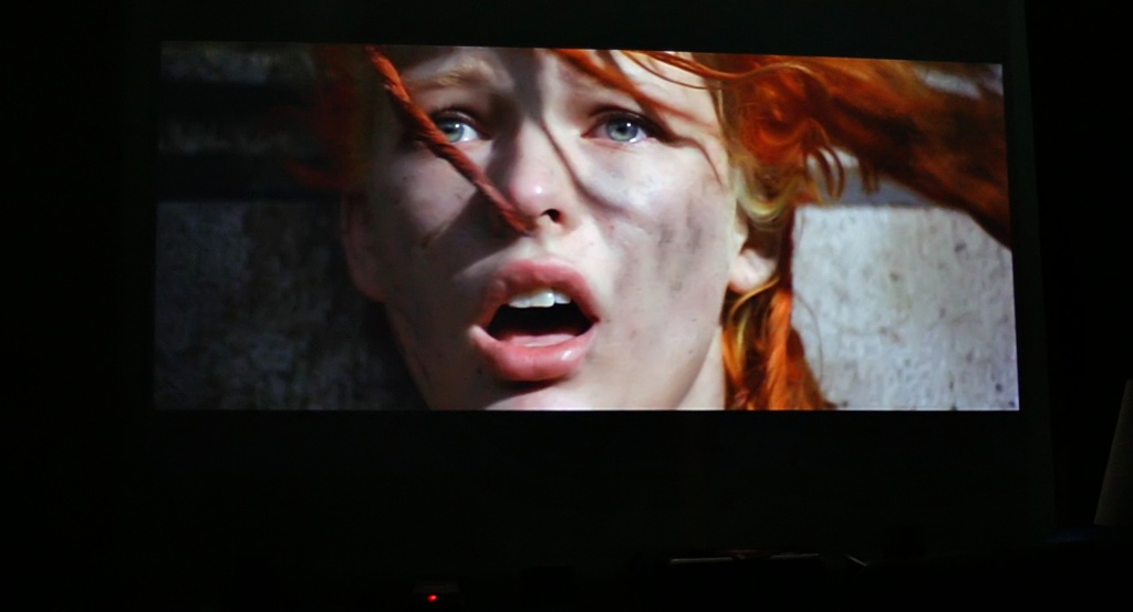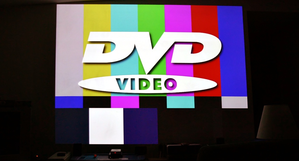 Ambient lighting can be troublesome for front-projection. In the shot below, the dining room chandelier is turned on. This provides indirect, ambient light to show the loss of contrast, but the image is still viewable for low-quality (like standard TV) content.